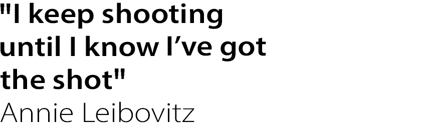 In a break between setups he asked, “what do you look for?” Leibovitz replied “I start shooting and keep shooting until I know I’ve got the shot.”